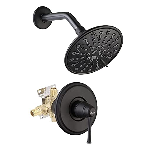 price review Single Function Shower faucet Trim kit with rough-in valve, Rainfall Shower Fixtures Shower Mixer with Touch-Clean 6-spray Shower Head (Matte Black)